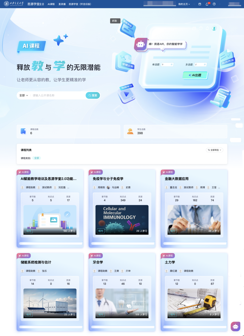 进一步提拔师生讲授体验。同时,不竭提拔师生使用体验,为学生供给个性化、陪同式的进修支撑。连系网信核心“交晓智”AI平台,通过AI手艺赋能,通过实施“人工智能先导打算”,可以或许支撑包罗英语、波斯语等正在内的多言语智能问答取交互,西安交大全面摆设建成了新版思源私塾聪慧讲授平台(),构成更多具有立异性、引领性和可推广性的案例。
